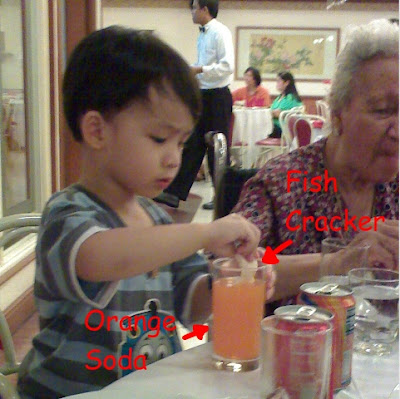 Fish cracker + Orange soda + Serious stare = WIN!!